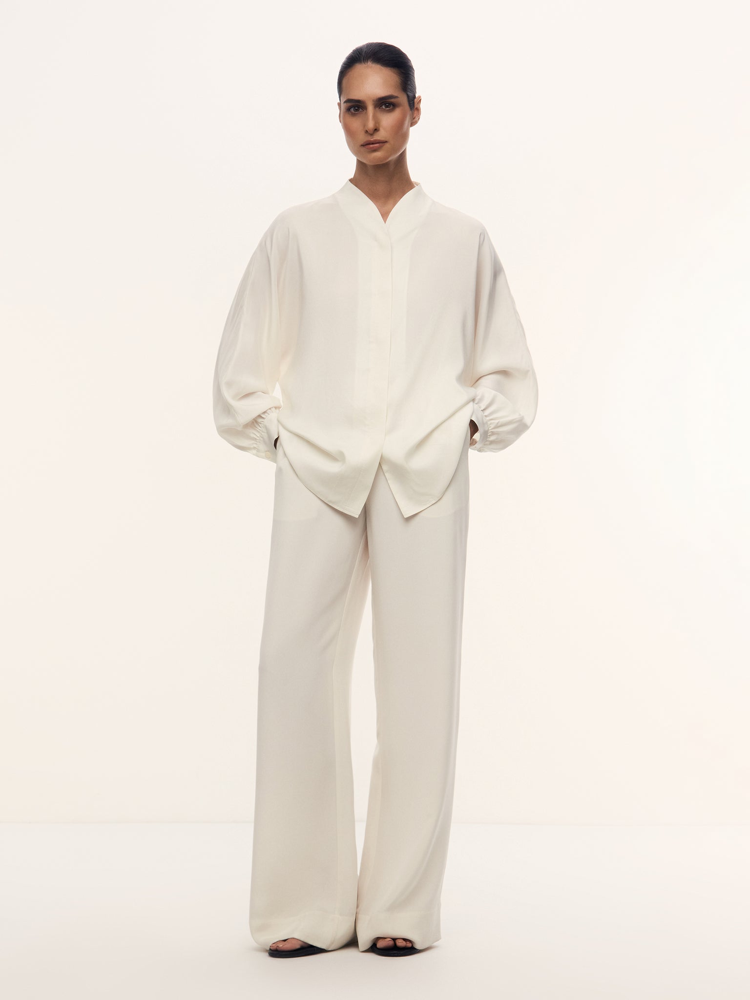 1.100% шелк Mulberry плотностью 30 момми. С помощью особой обработки эту ткань сделали мягче обычного шелка, она не блестит и не скользит по коже