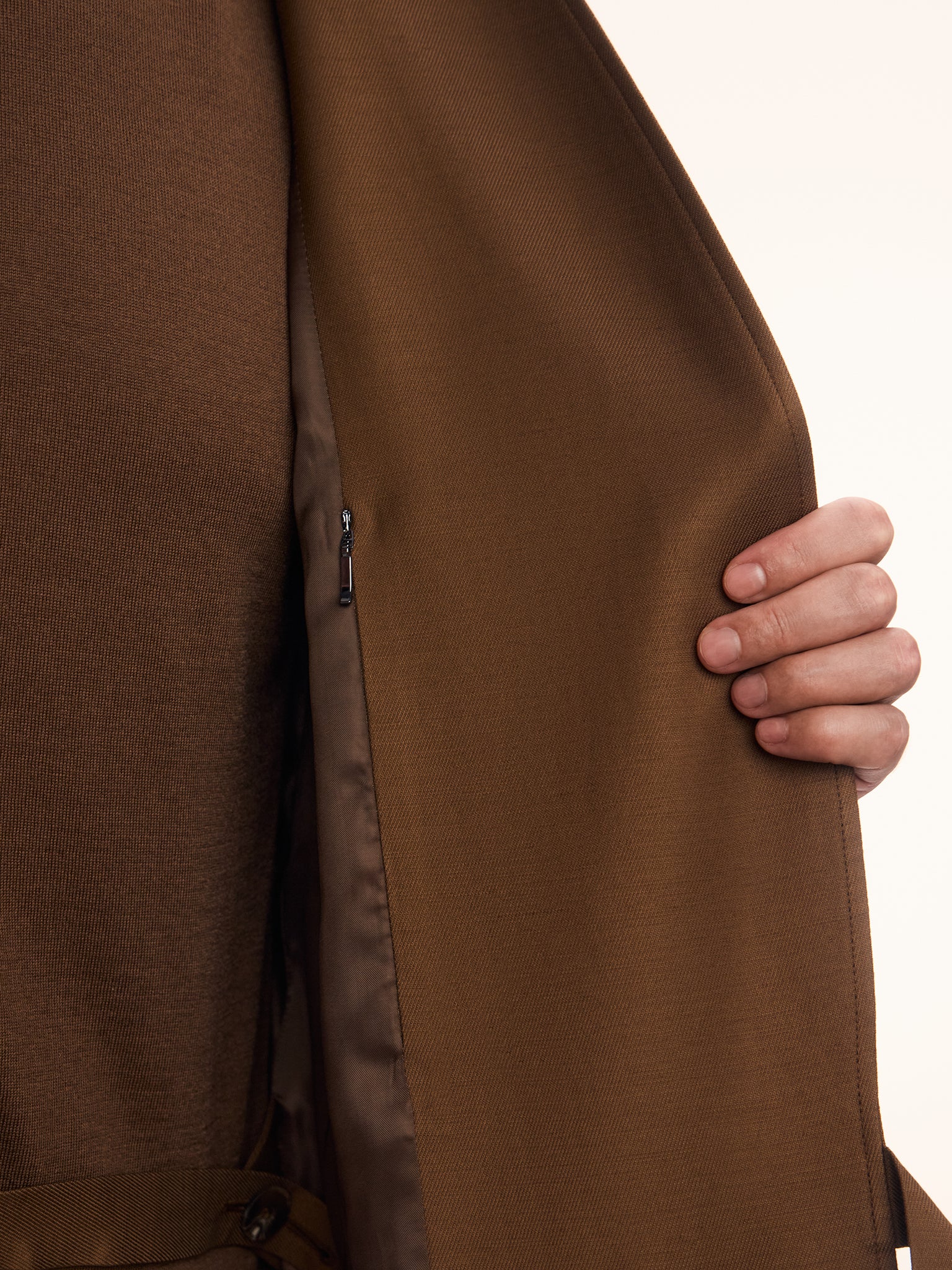 3. Продуманные детали: изнутри борт фиксируется пуговицей, на шелковистой подкладке — аккуратный карман на молнии