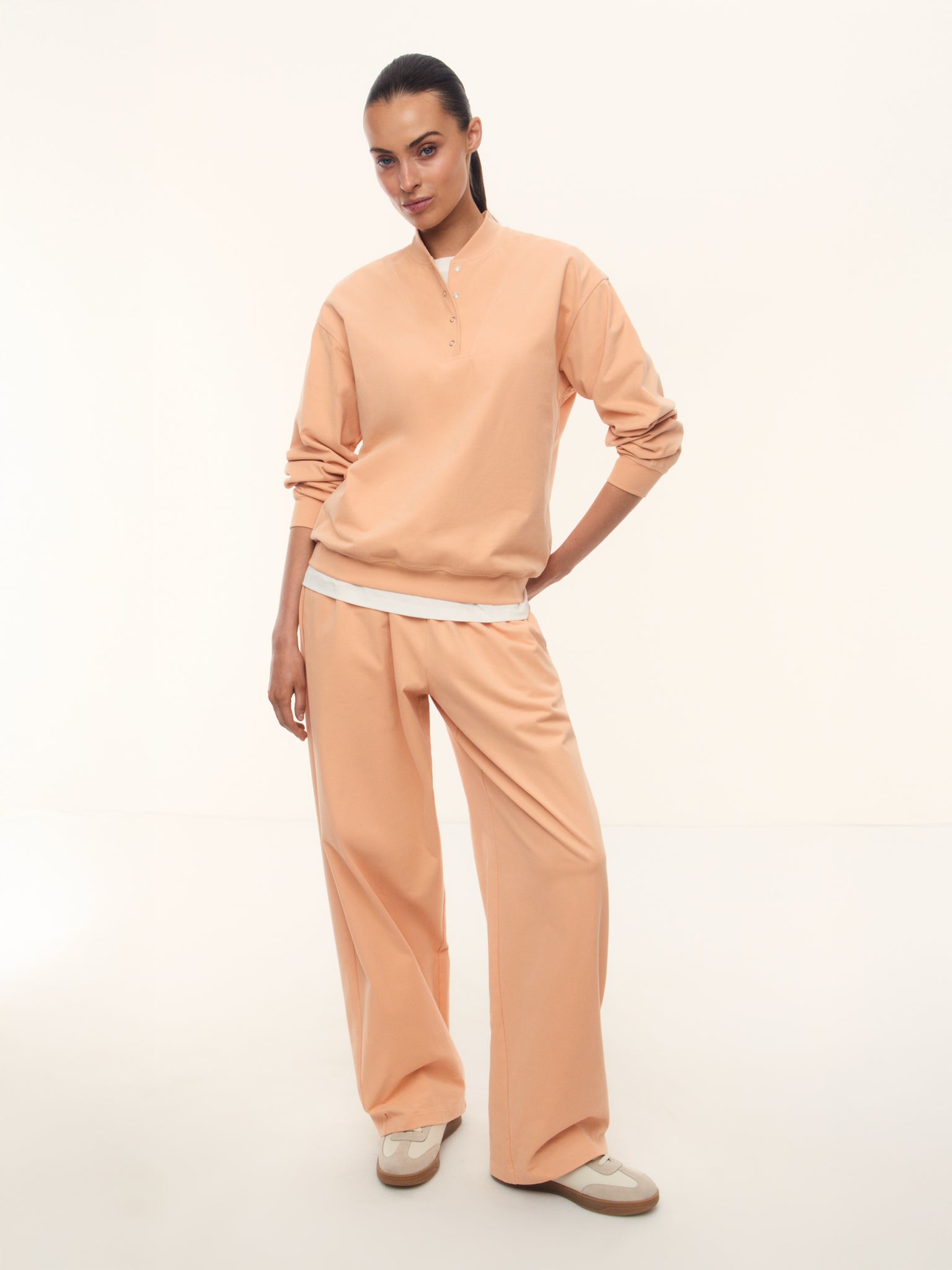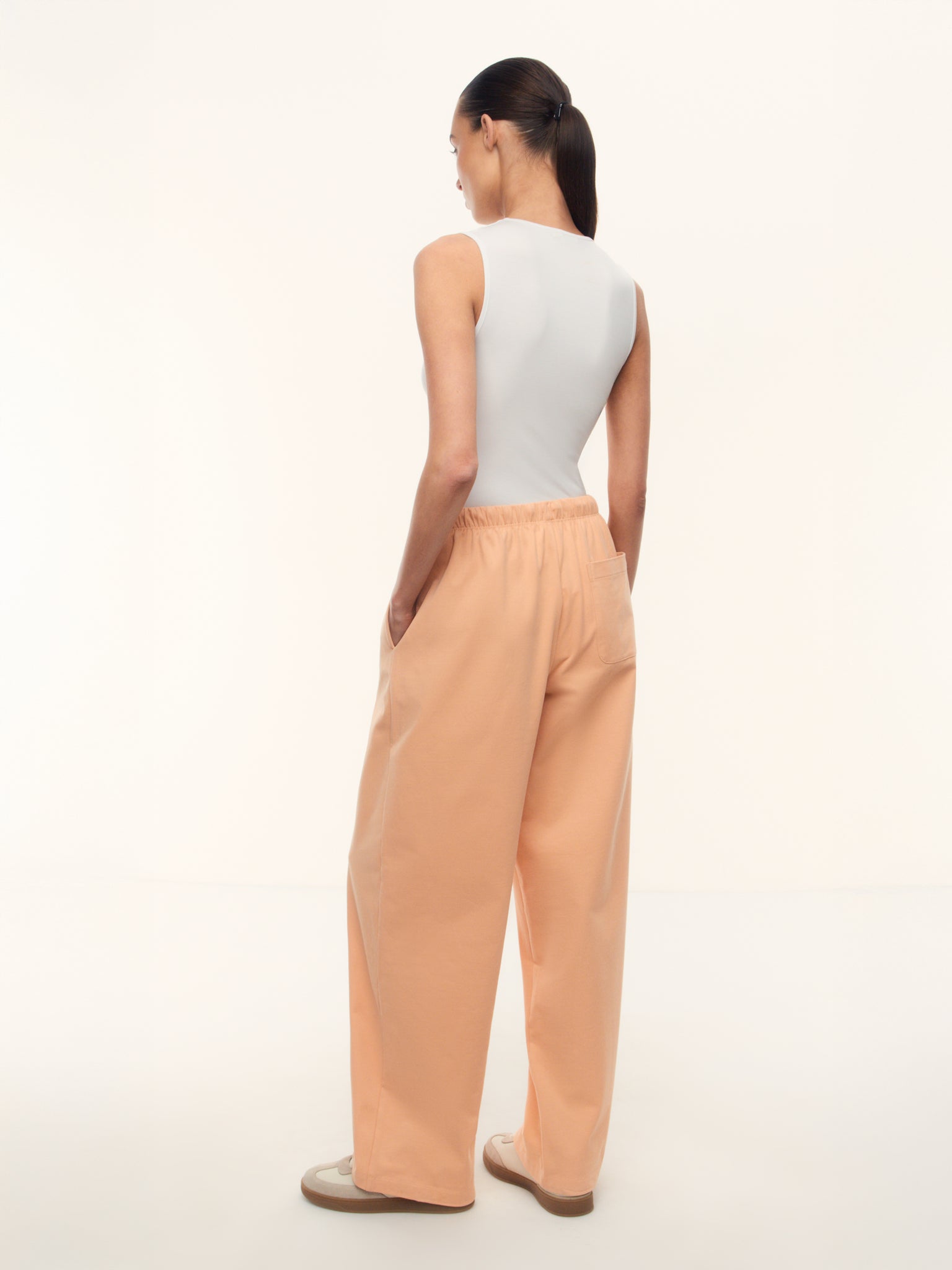 1. Комфортные брюки для путешествий и поздних завтраков в выходной: сшиты из мягкого, бархатистого на ощупь хлопка