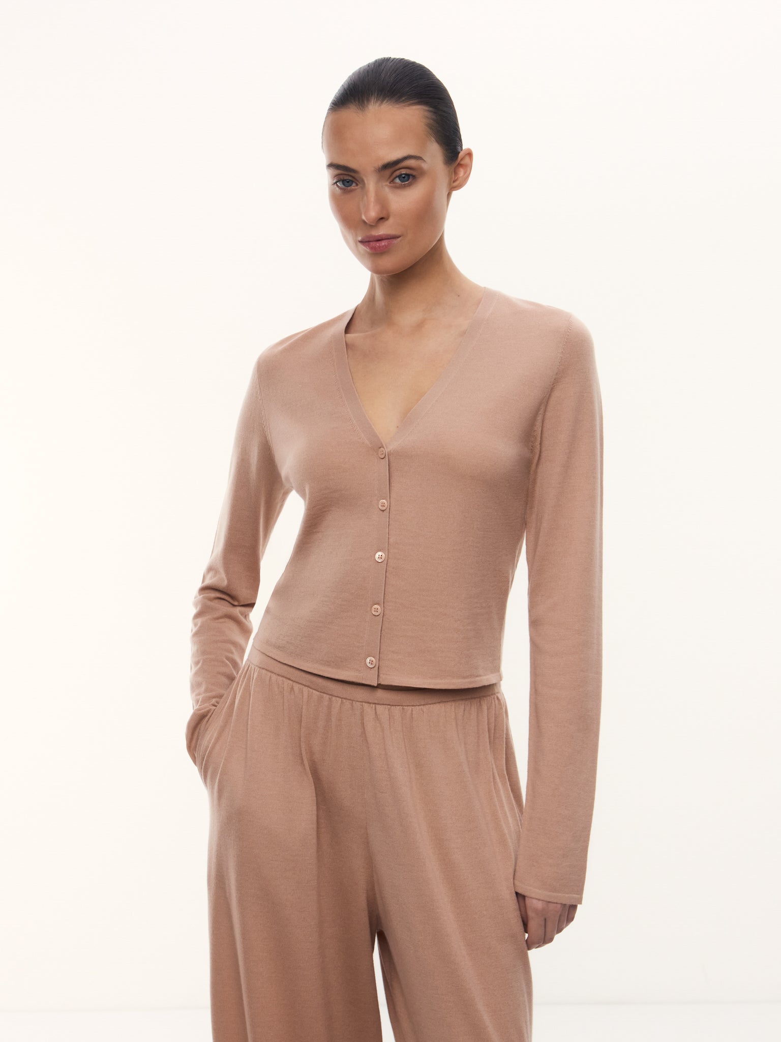1. Связан в одну нить из тонкой мериносовой шерсти и натурального шелка — мягко облегает и деликатно поблескивает