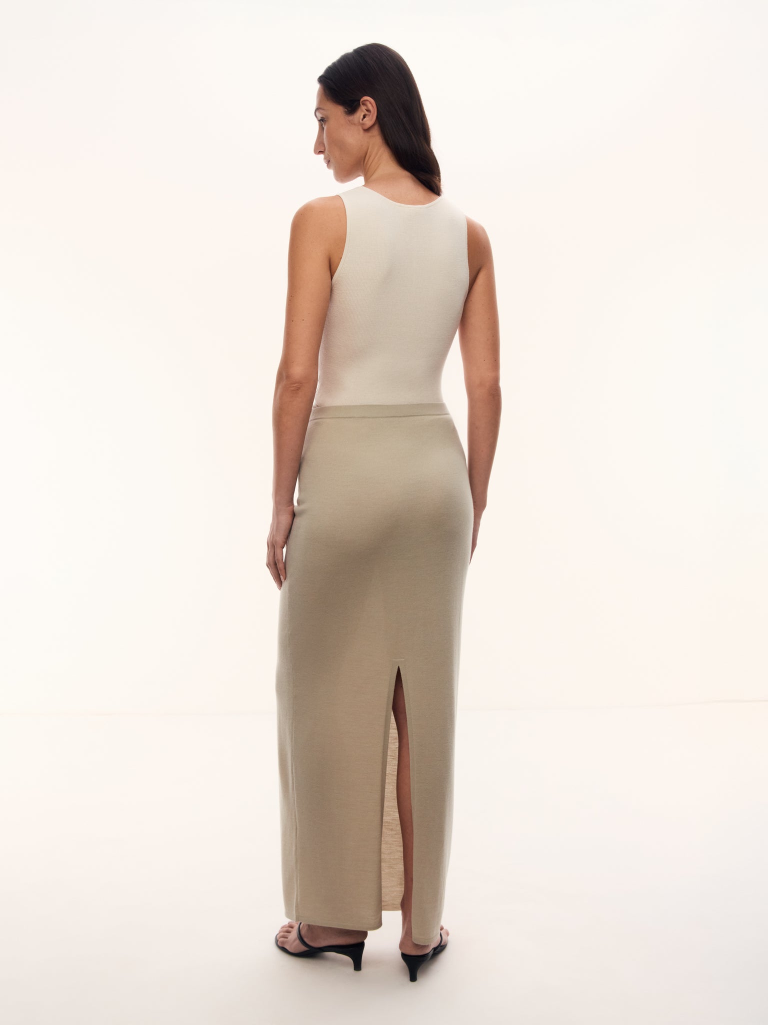 2. Подчеркивает бедра и вытягивает силуэт благодаря длине макси и отсутствию карманов