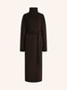 4. Высокий воротник можно зафиксировать пуговицей, а талию — подчеркнуть поясом