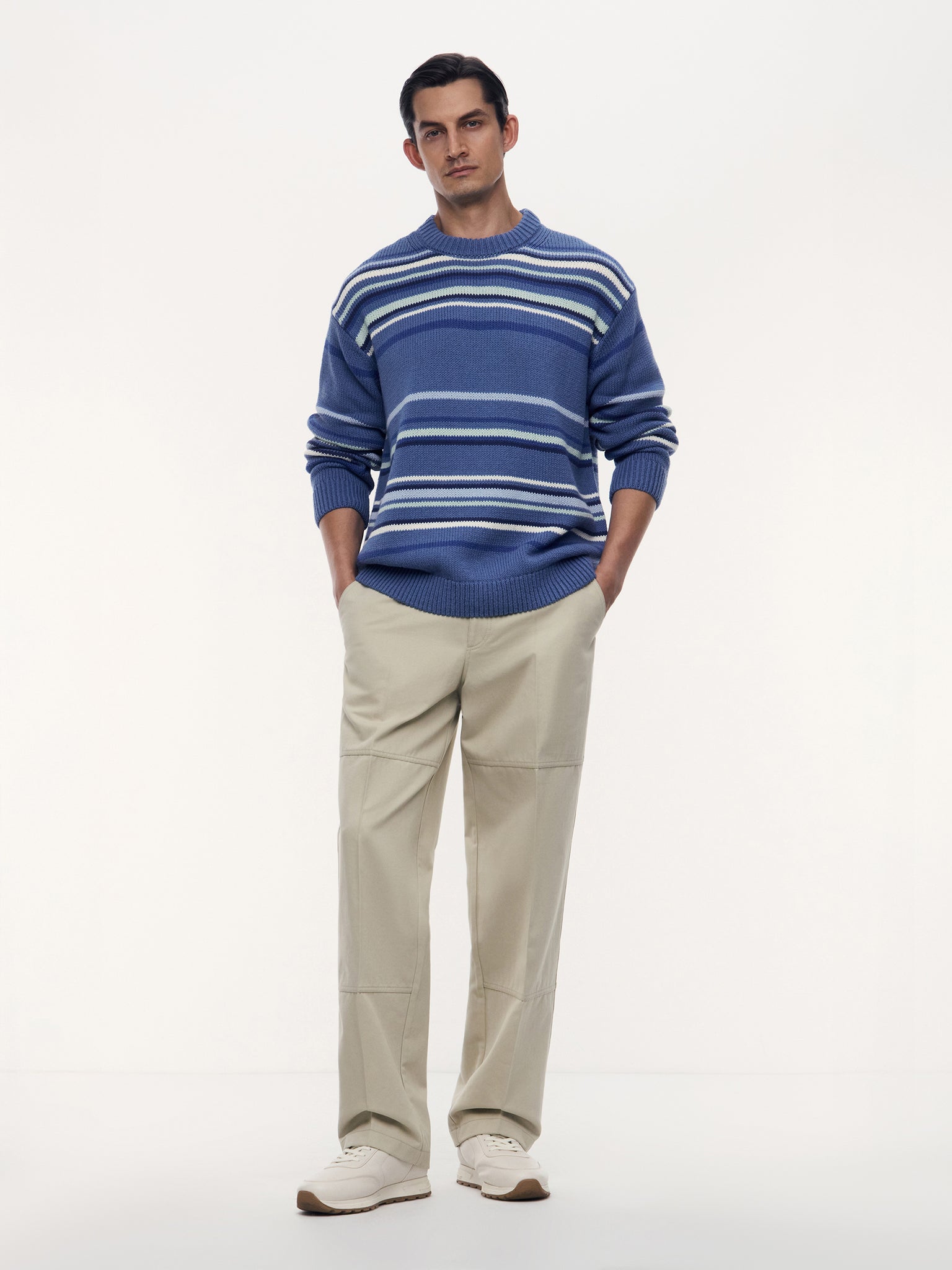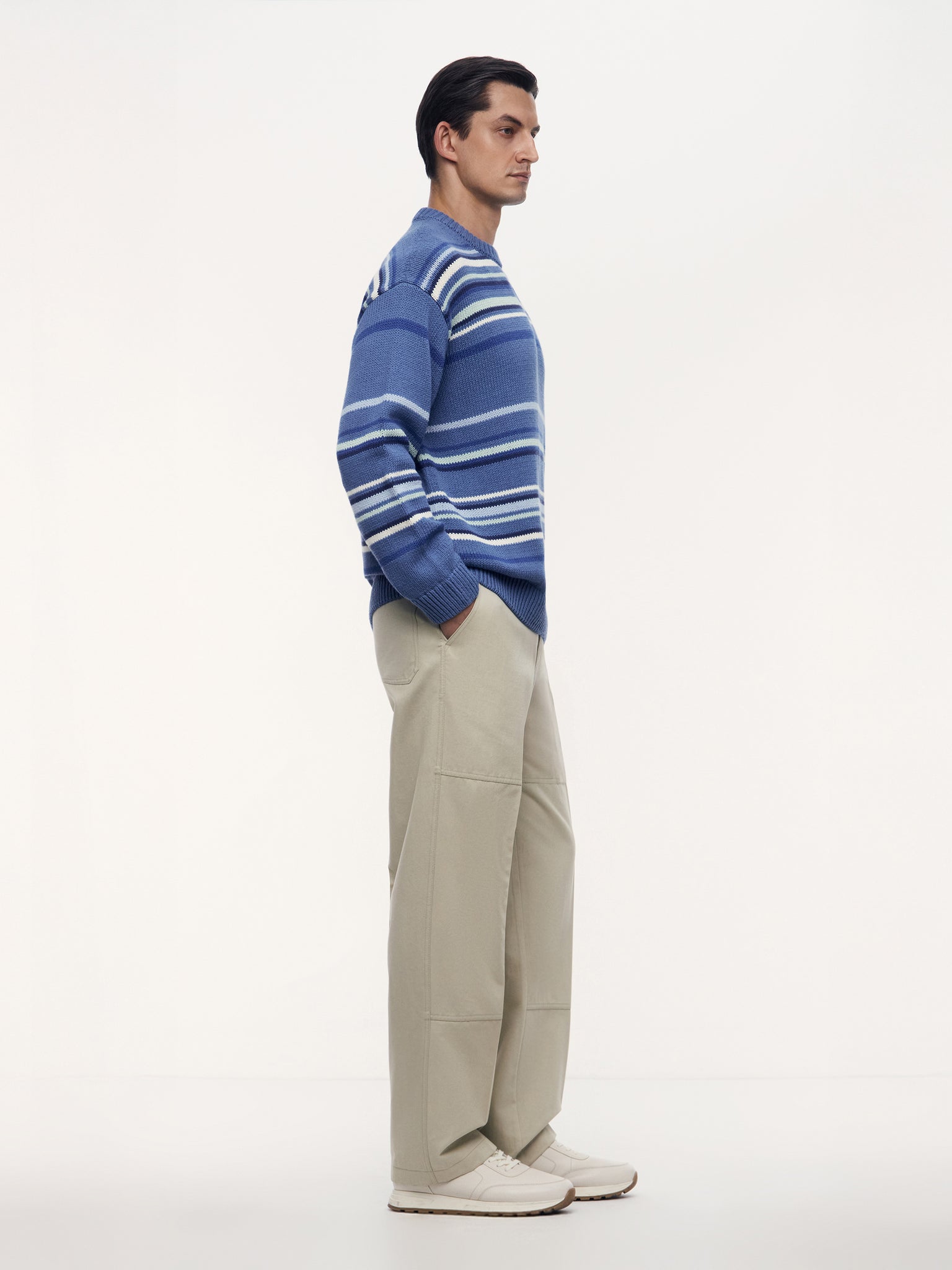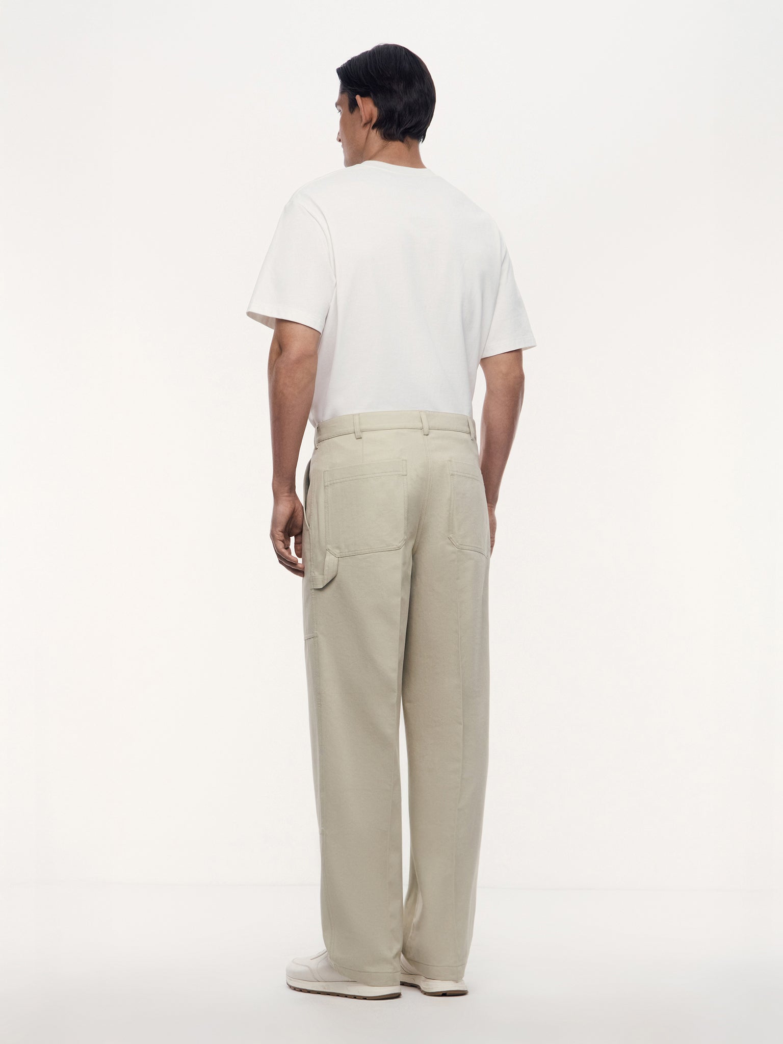 3. В глубокие косые карманы удобно прятать руки, а небольшая петелька на бедре отсылает к классическим carpenter pants