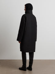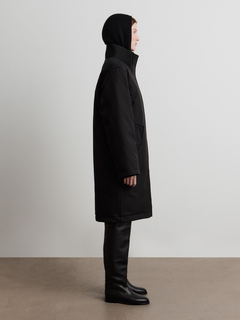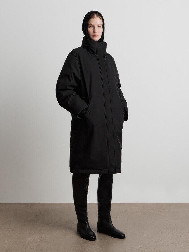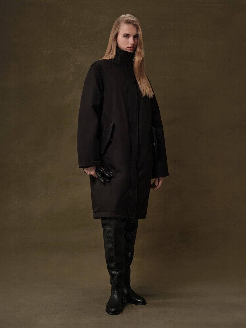 Самый длинный пуховик сезона — с ним можно носить любимые платья даже в морозы. Плотная ткань продублирована микрофлисом, не пропускает ветер и отталкивает влагу, высокий воротник и манжеты из мягкой вязаной шерсти помогают сберечь тепло — в таком пуховике будет приятно задержаться на улице после премьеры или свидания.