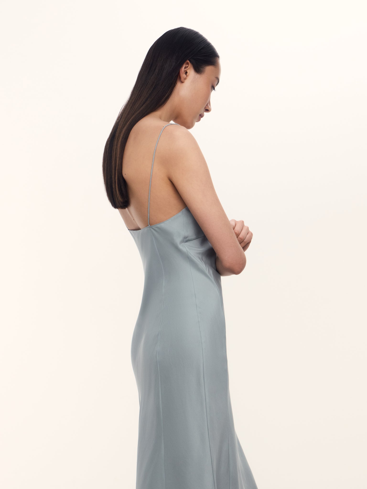 2. Деликатно подчеркивает фигуру за счет кроя и глубокого выреза на спине