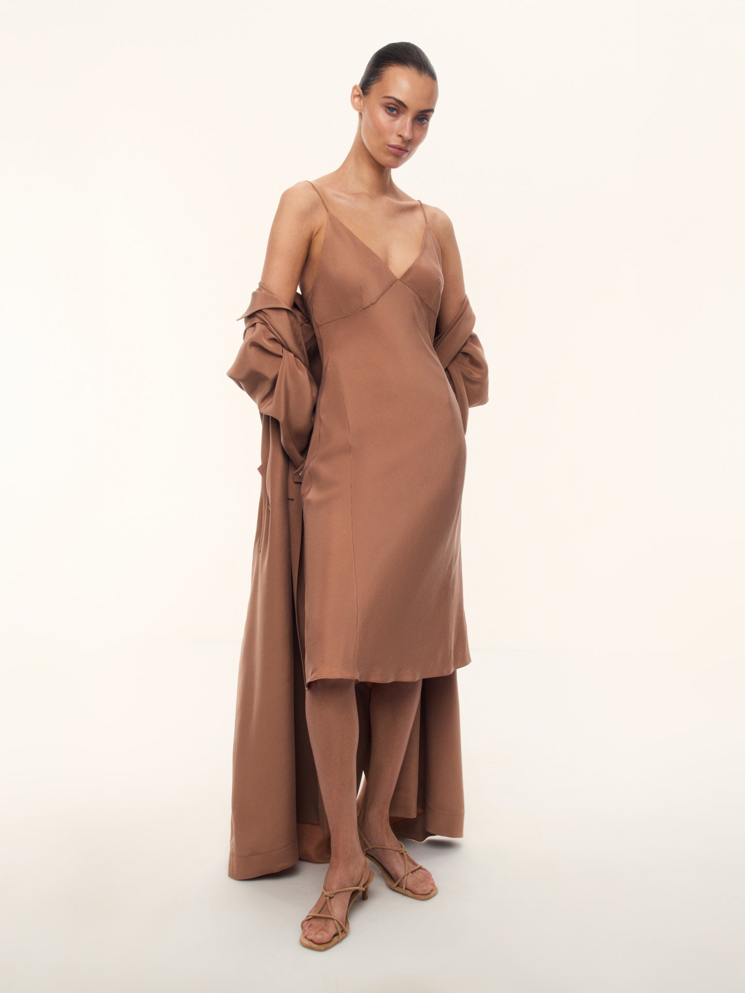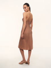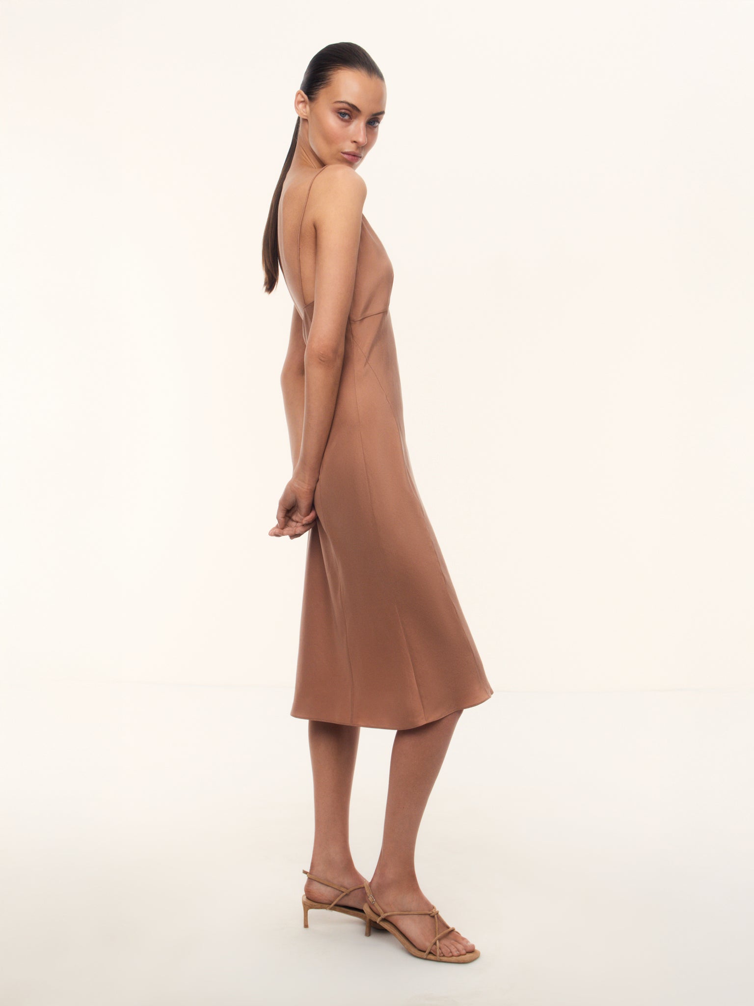 2. Деликатно подчеркивает фигуру за счет кроя и глубокого выреза на спине