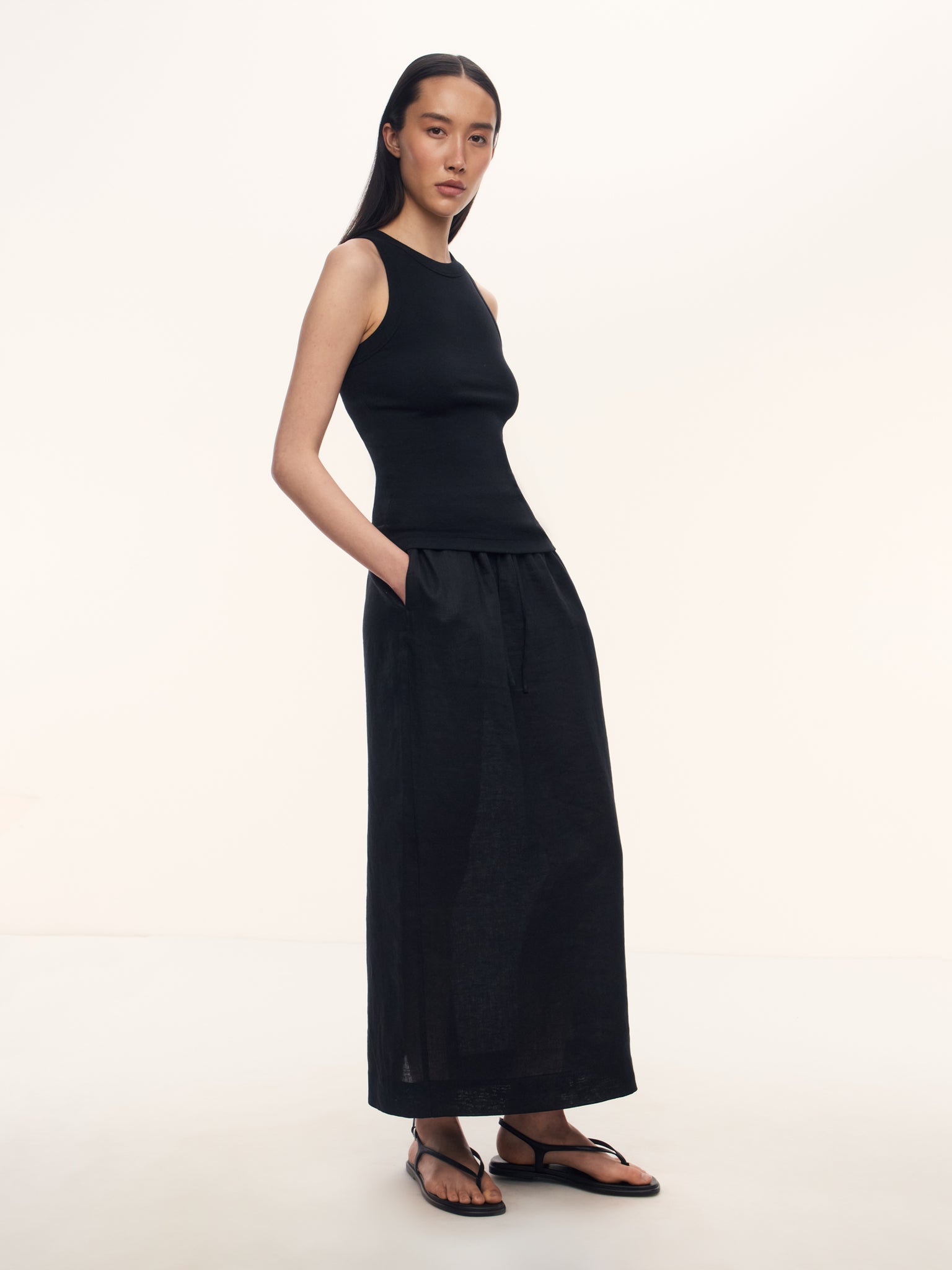 2. В этом сезоне мы обновили материал — выбрали тонкий трикотаж из хлопка с шелком и эластаном. Ткань отлично держит форму и мягко струится по телу