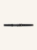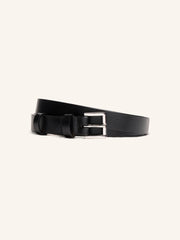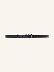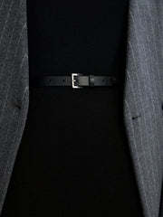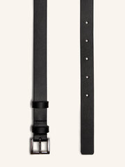 Изящный узкий ремень с двумя шлевками, светлой подкладкой и прямоугольной пряжкой из серебристого металла. Выполнен из гладкой матовой кожи коровы, плотной и износостойкой. В этом сезоне на внутренней стороне мы добавили тиснение с артикулом и размером, чтобы вам было проще купить подходящий аксессуар. Ширина 1,8 см.