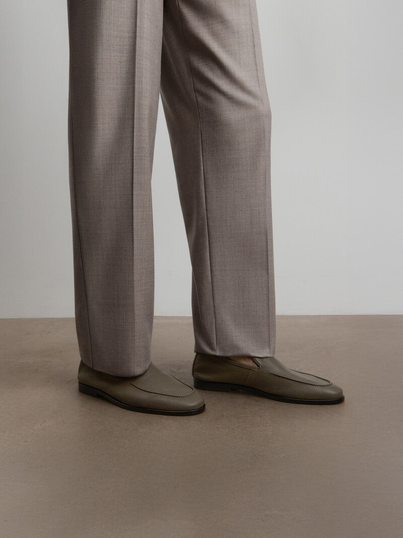 Эта пара — для особенных случаев. Мы выбрали для лоферов мягкую оленью кожу с зернистой фактурой, а для подошвы — плотную кожу КРС, которую защитили с помощью инжекции. Также мы отказались от подкладки — чтобы натуральные материалы могли проявить свои лучшие качества: ведь так вам будет еще комфортнее.