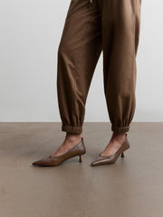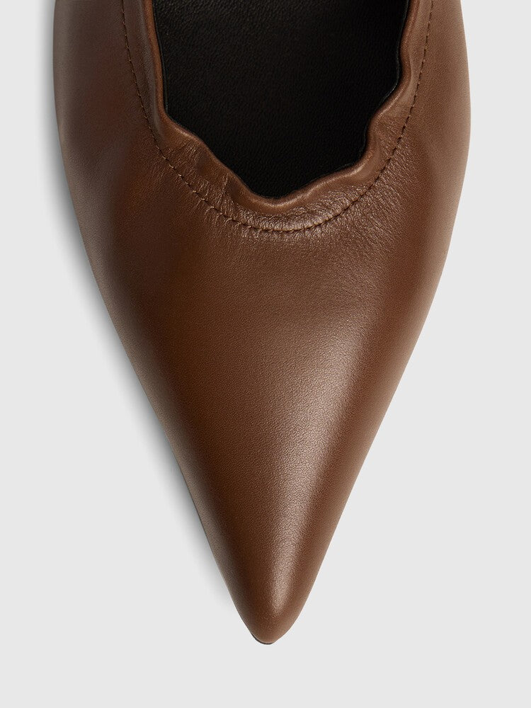 Эти лаконичные туфли — универсальные, как лодочки, при этом очень удобные и подойдут на разный подъем благодаря эластичному краю. Выполнены из мягкой коровьей кожи, подкладка и стелька — из нежной кожи шевро. Тунитовая подошва защищена инжекцией, а мягкая петелька поможет легко надевать и снимать туфли.