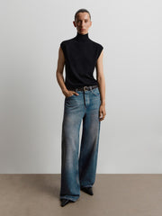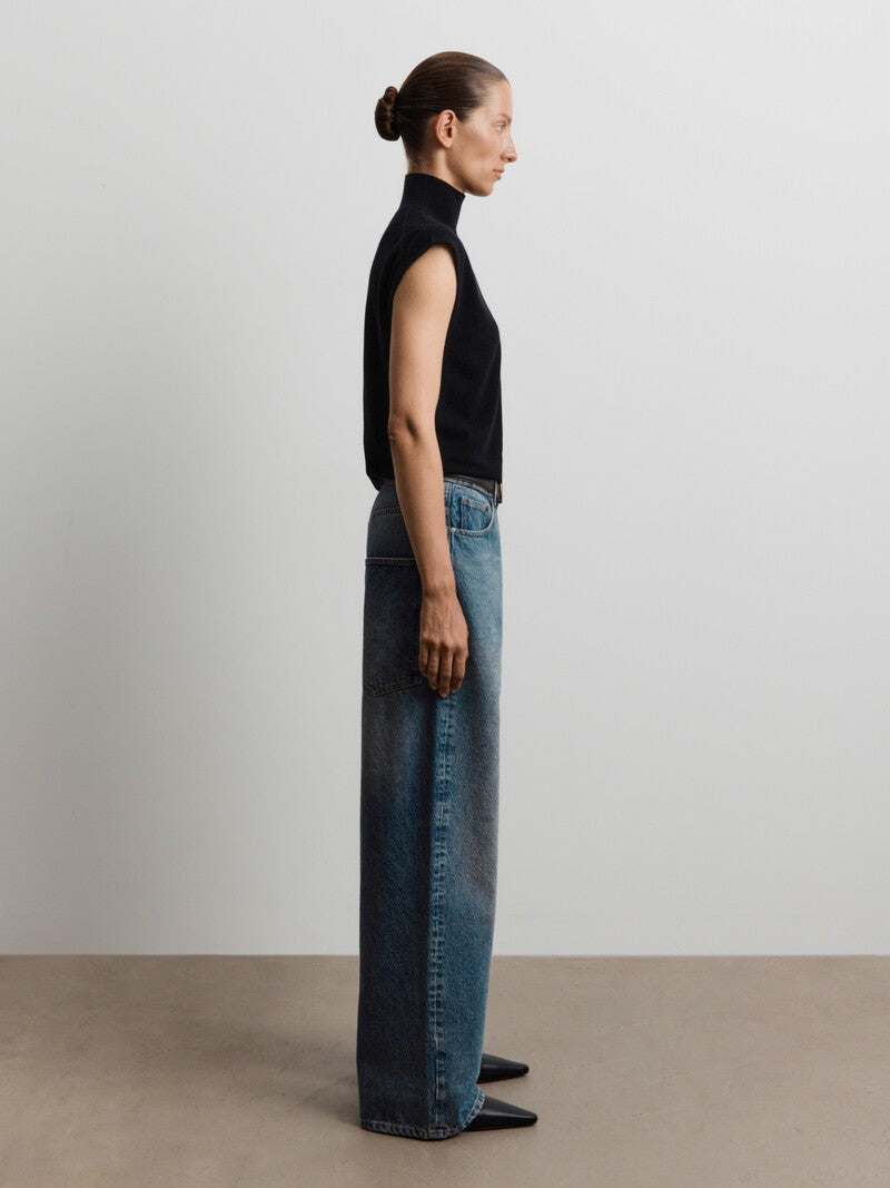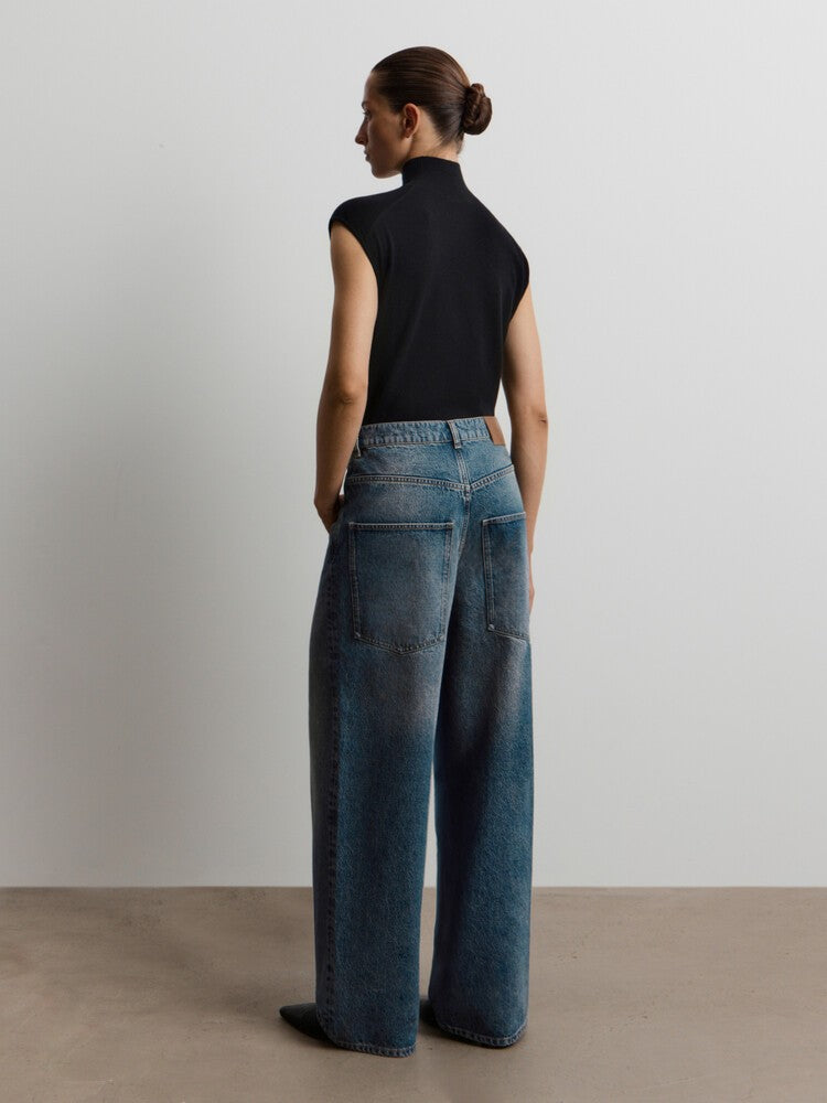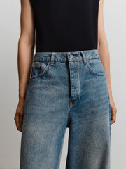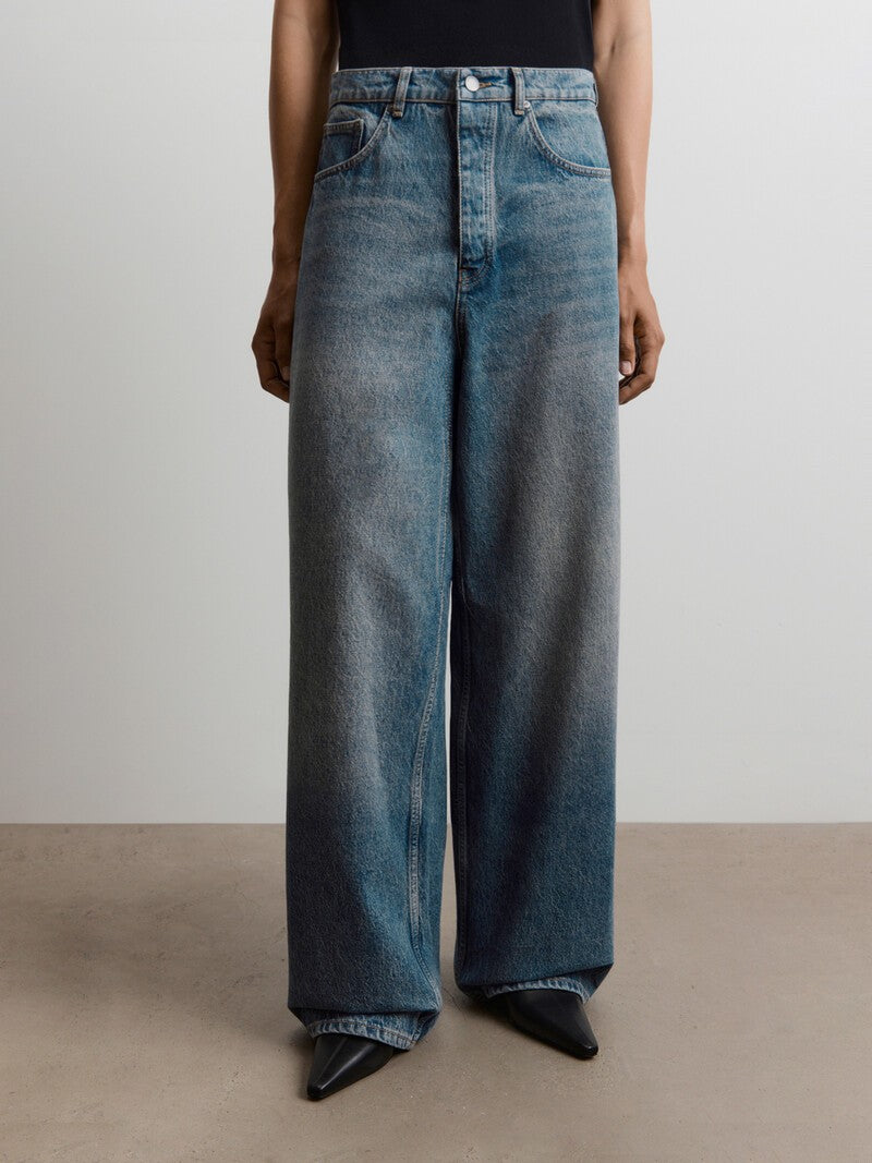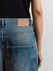 Удлиненные широкие джинсы с низкой посадкой и винтажным характером — новинка в нашей коллекции. Подойдут и к изящным лодочкам, и к массивным кроссовкам в дни, когда хочется сделать образ особенным, но комфортным. Сшиты из прочного хлопка плотностью 14,5 Oz с выраженным рубчиком, и дополнены патчем из натуральной кожи. Застегиваются на болты.