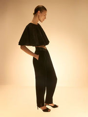 4. Комфортный крой: брюки свободны в бедрах и слегка заужены книзу. Плотный пояс-кушак из дикого шелка создает акцент на талии