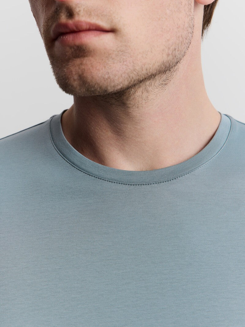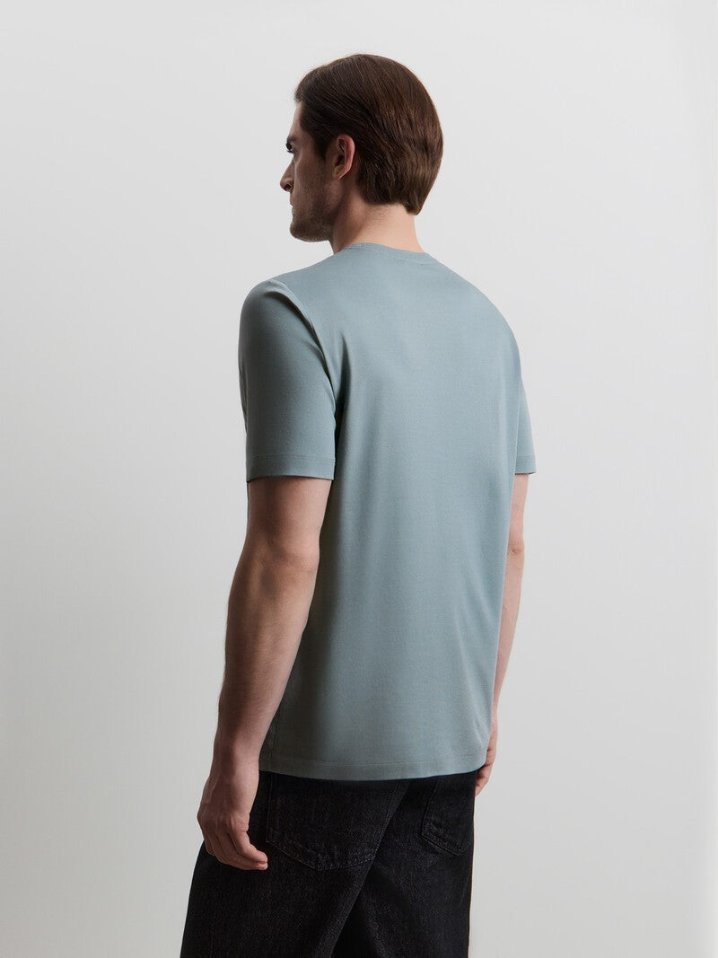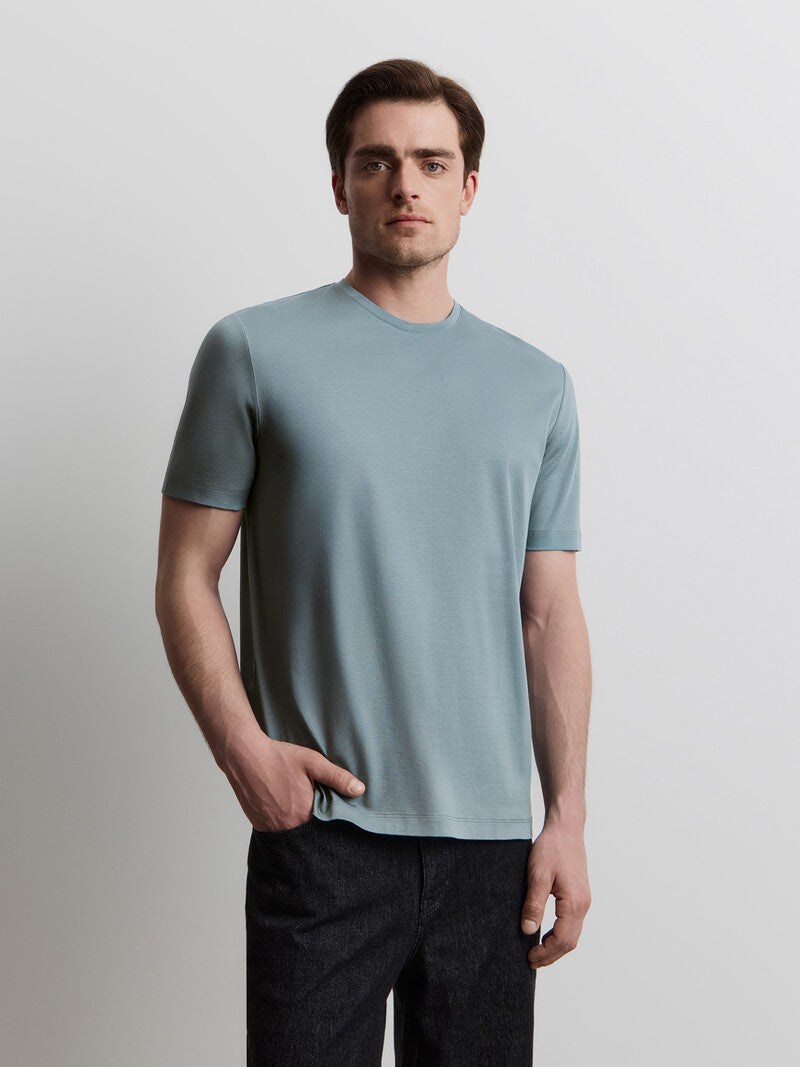 Базовая футболка, созданная из хлопка высшего качества. Эта простая и универсальная модель сшита из пима-хлопка, длинные волокна которого с помощью специальной технологии сделали более прочными, гладкими и стойкими к влиянию времени, стирок и солнца. Благодаря особому переплетению, футболка не перекручивается в швах и сохраняет приятную плотность.