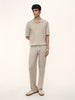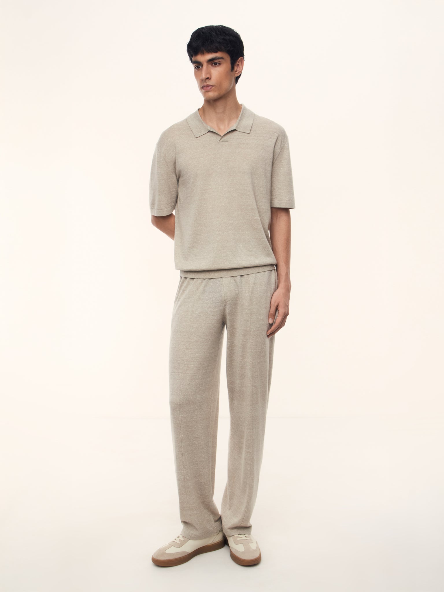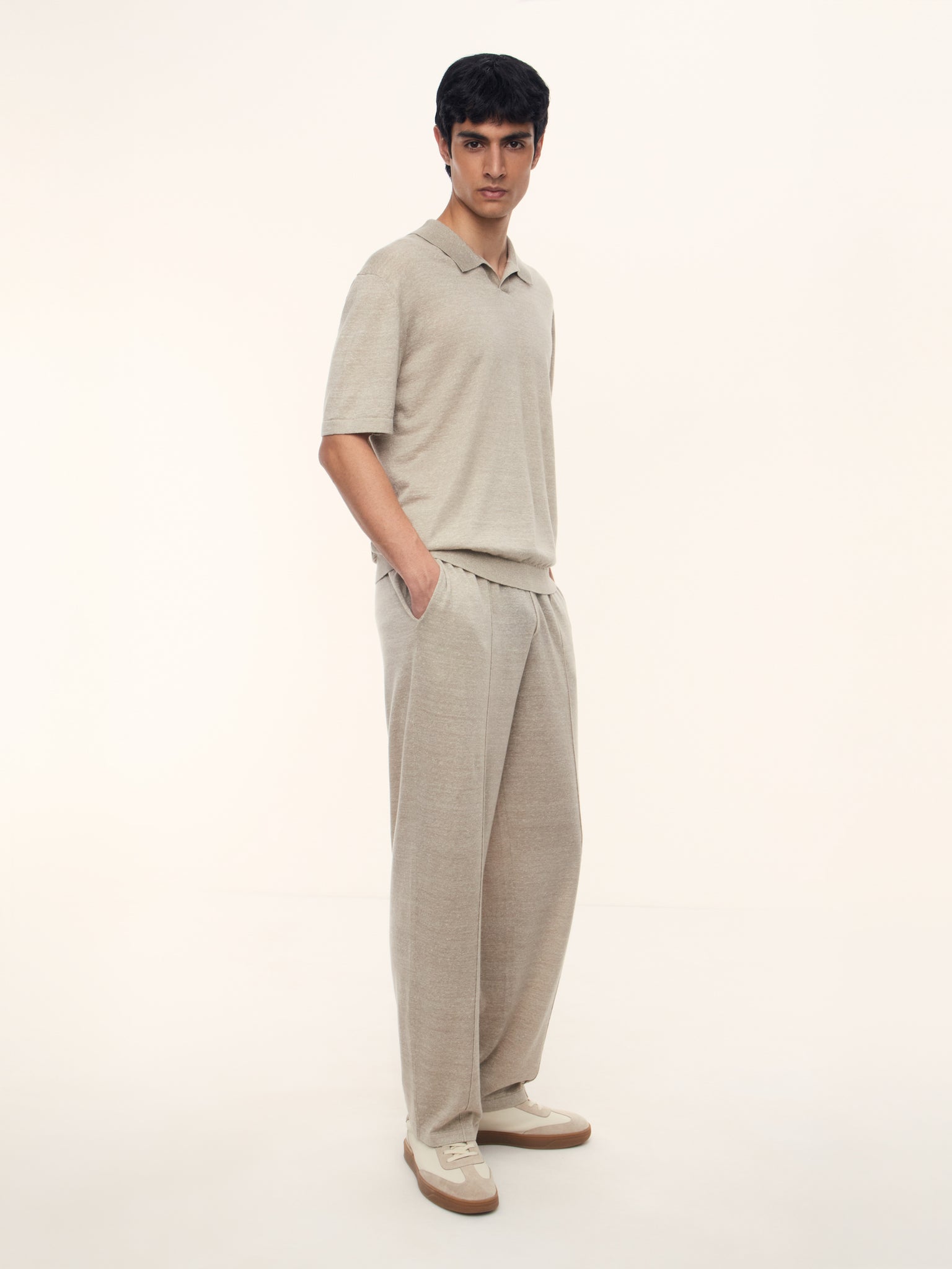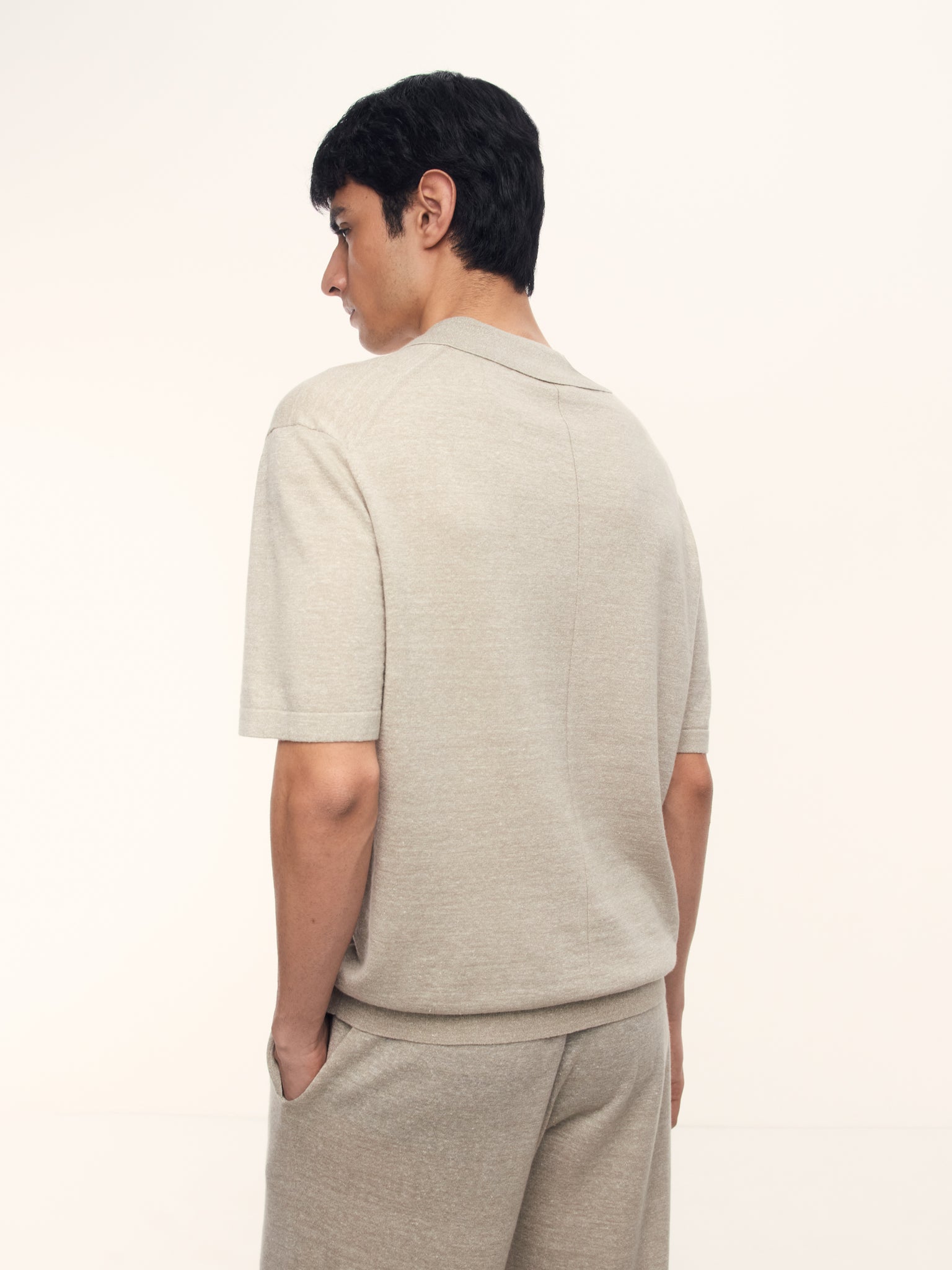 1. Для этого поло мы выбрали редкую пряжу из тонкой шерсти и льна и связали ее в одну нить, чтобы трикотаж получился легким и дышащим
