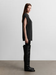 Лаконичный свободный топ — мягкий, легкий и очень теплый. Носите его поверх водолазки или лонгслива или надевайте под пальто или тренч как дополнительный согревающий слой. Связан из шерсти австралийского мериноса, которая особенно ценится за свои качества — она прекрасно дышит, придает трикотажу гладкость и совсем не колется.