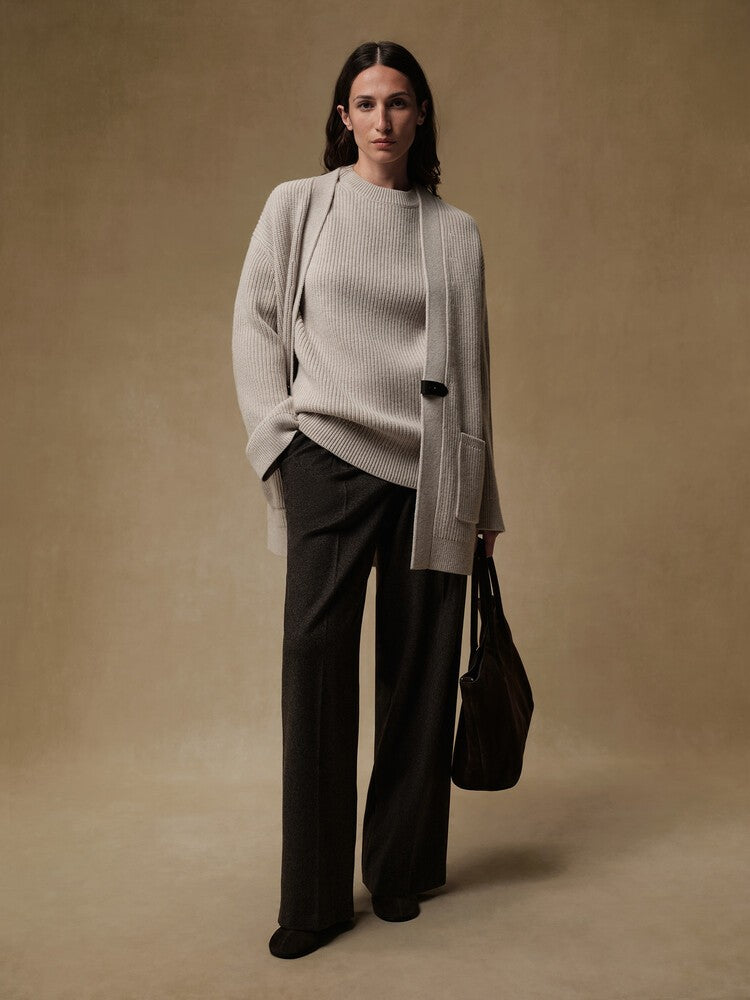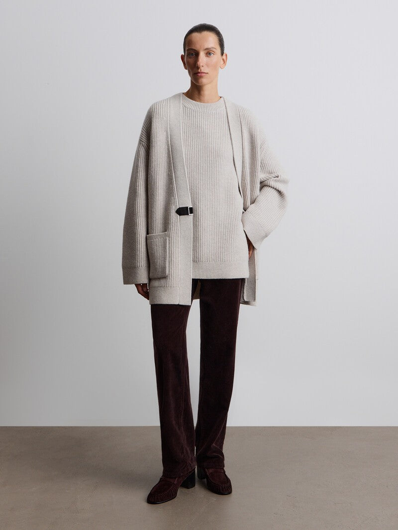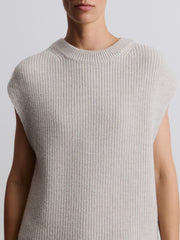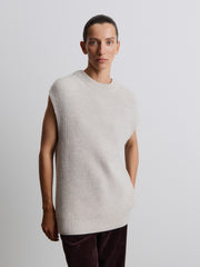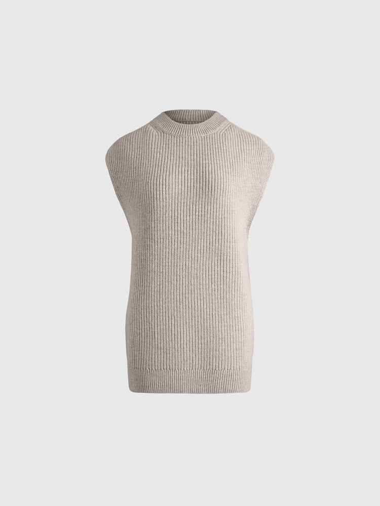 Лаконичный свободный топ — мягкий, легкий и очень теплый. Носите его поверх водолазки или лонгслива или надевайте под пальто или тренч как дополнительный согревающий слой. Связан из шерсти австралийского мериноса, которая особенно ценится за свои качества — она прекрасно дышит, придает трикотажу гладкость и совсем не колется.