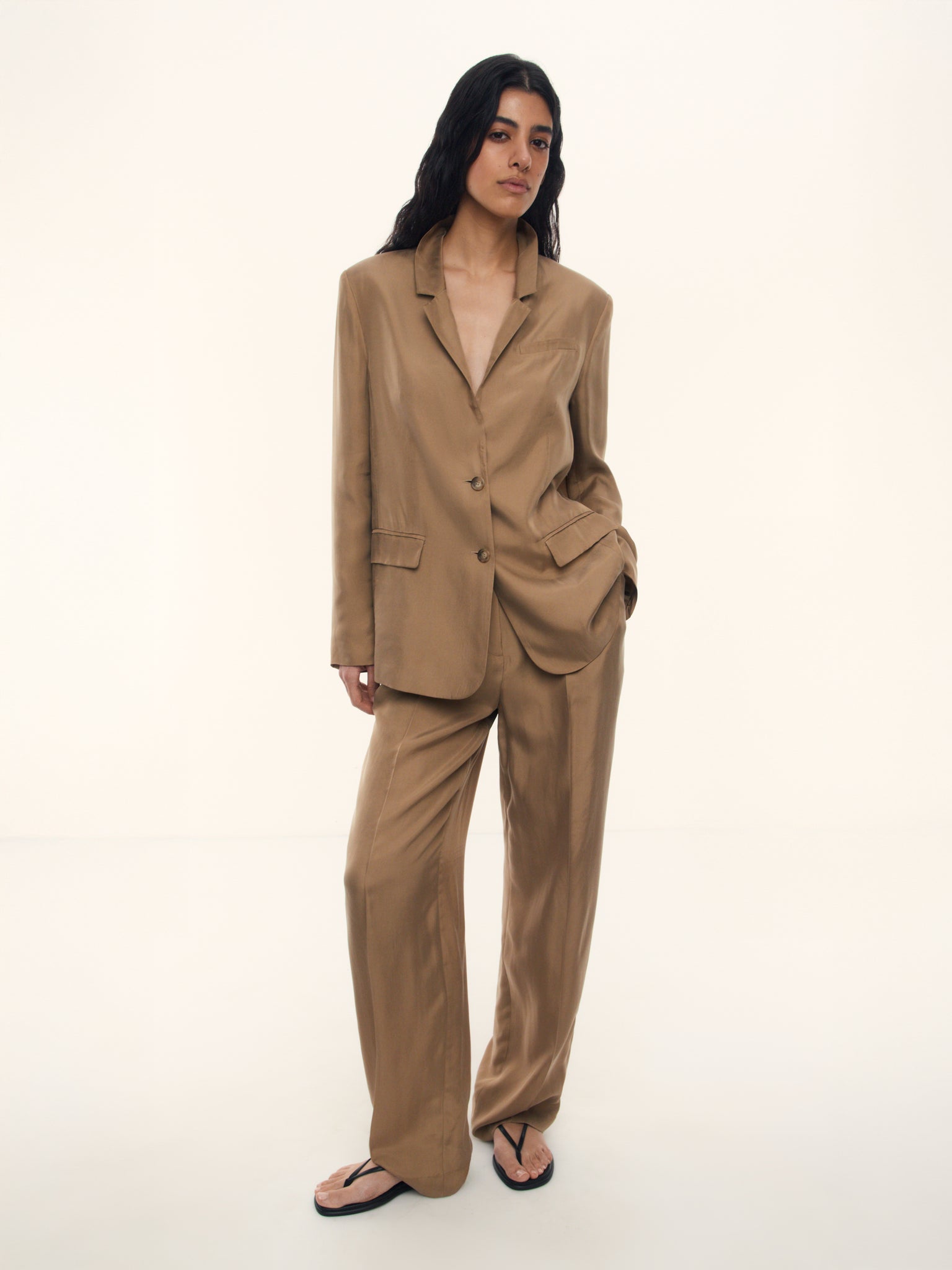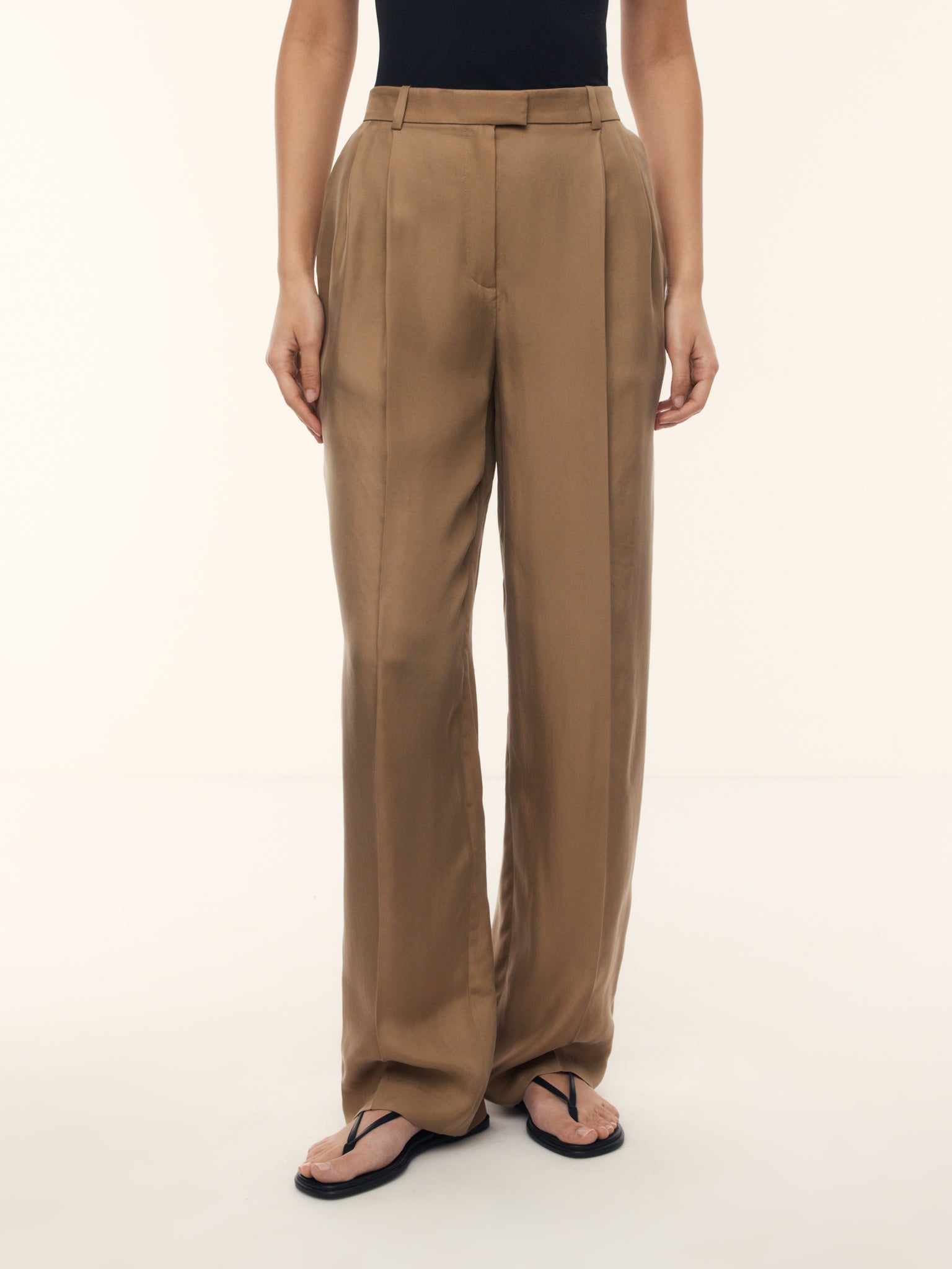 1. Легкие брюки из смеси купро и вискозы — бархатистой матовой ткани, дышащей и мягкой
