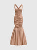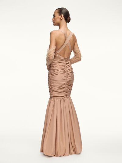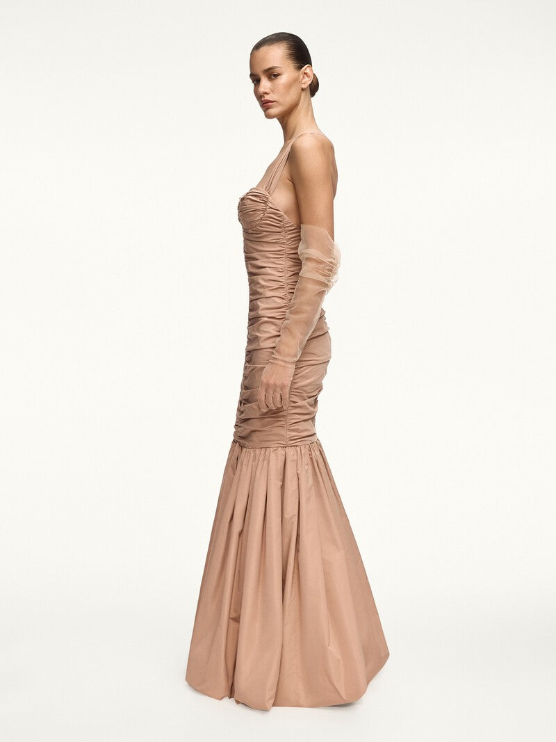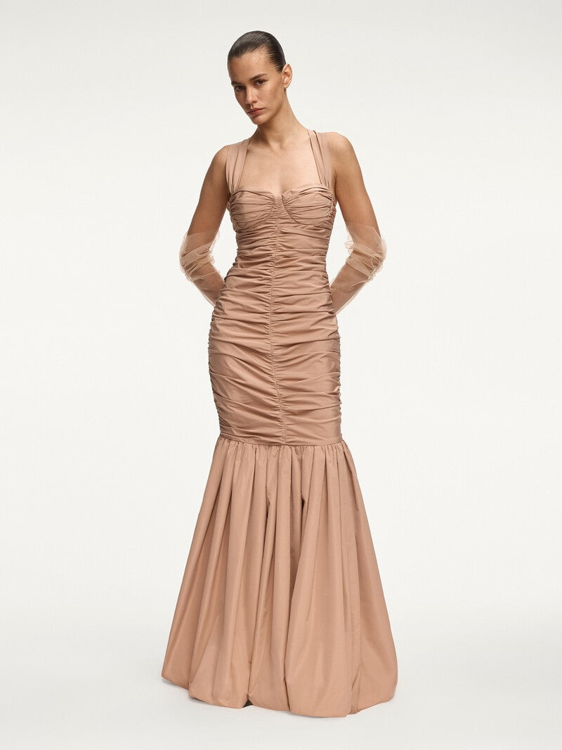 2. Благодаря сборке и коктейльному лифу с косточками платье комплиментарно подчеркивает фигуру и формирует стройный силуэт
