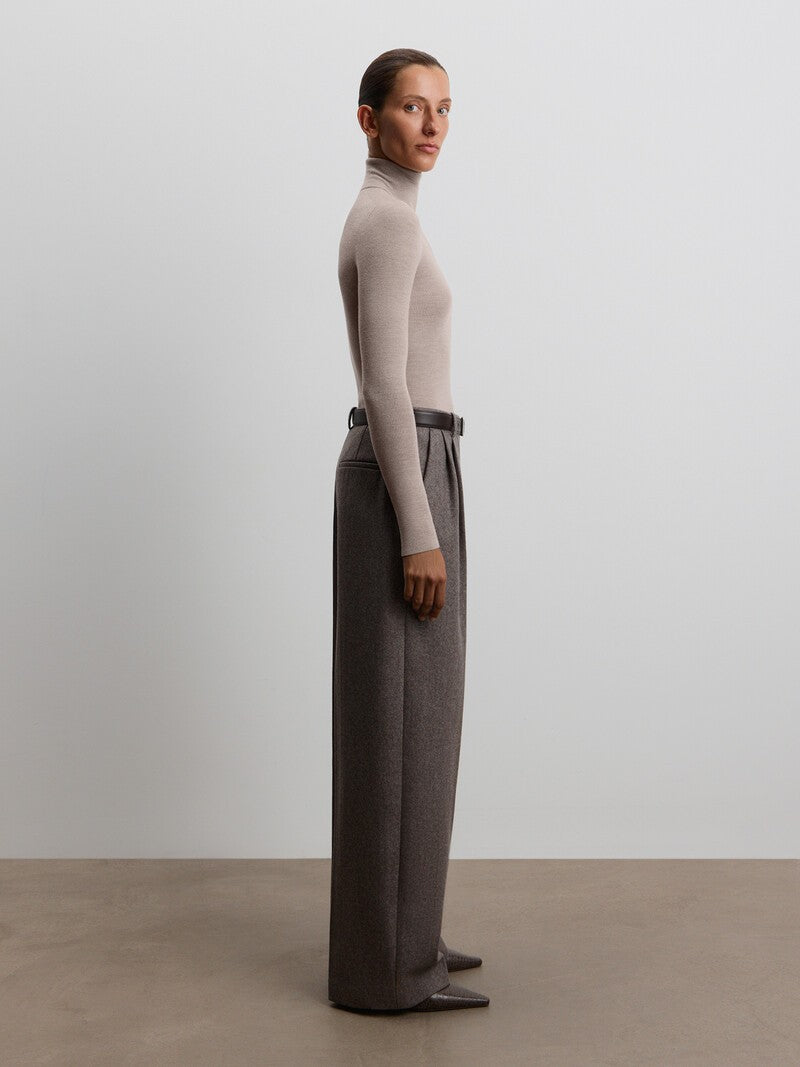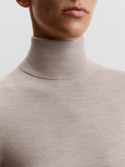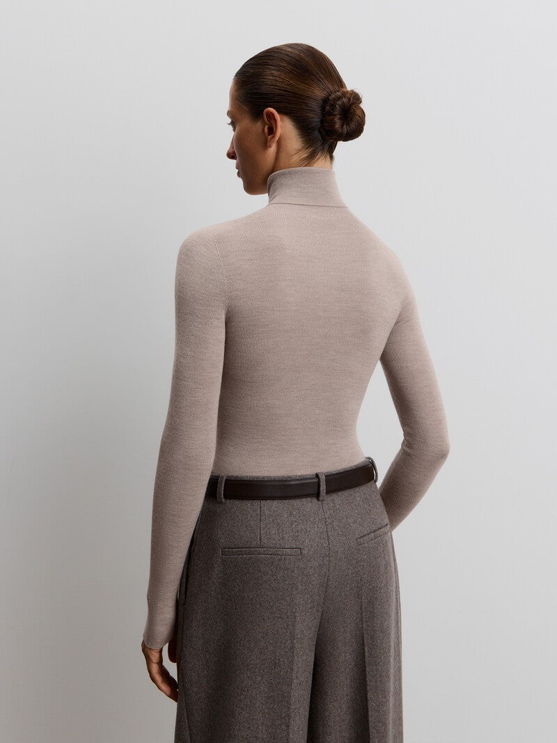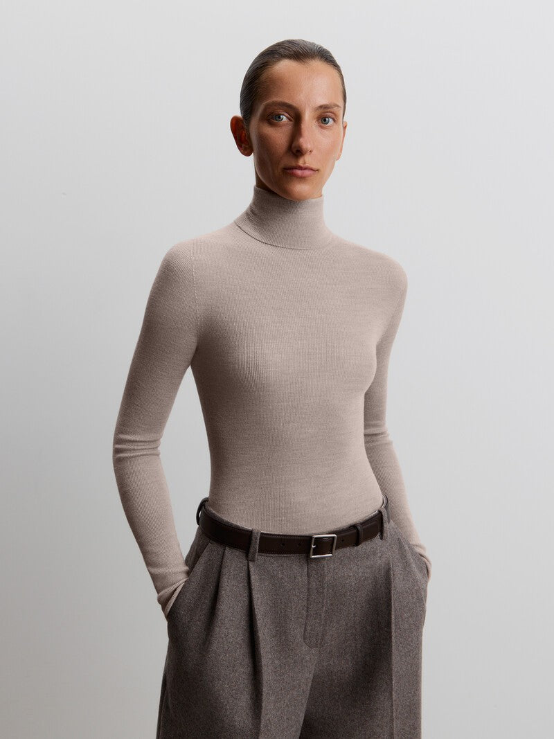 Эта бесшовная водолазка незаменима в прохладные дни — она комфортно облегает силуэт и отлично подходит для ношения под жакет. Тонкая и легкая пряжа из шерсти мериноса совсем не колется, а благодаря особой обработке волокон водолазка не теряет форму после стирок — возможно, поэтому она уже несколько сезонов остается бестселлером нашей коллекции.