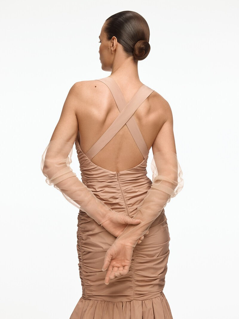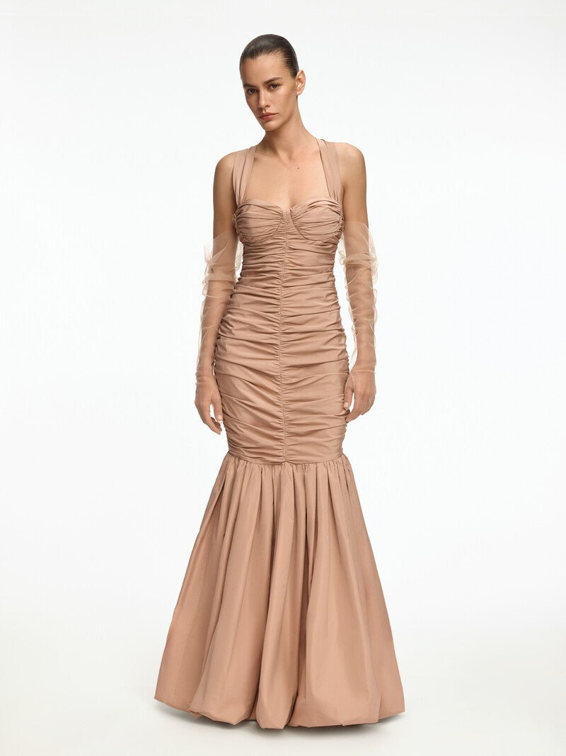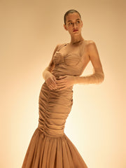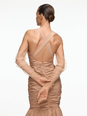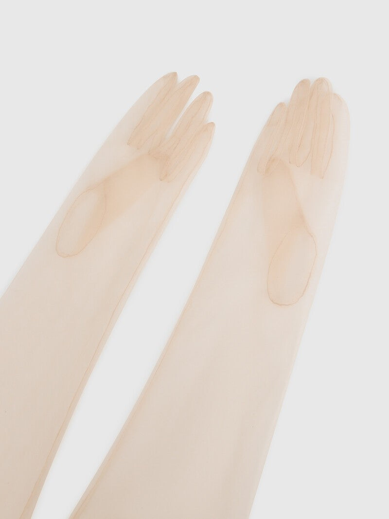 1. Эти вечерние перчатки обволакивают руку: в расправленном виде достигают плеча, и вы можете задрапировать их, как нравится