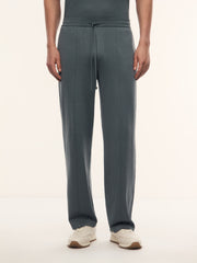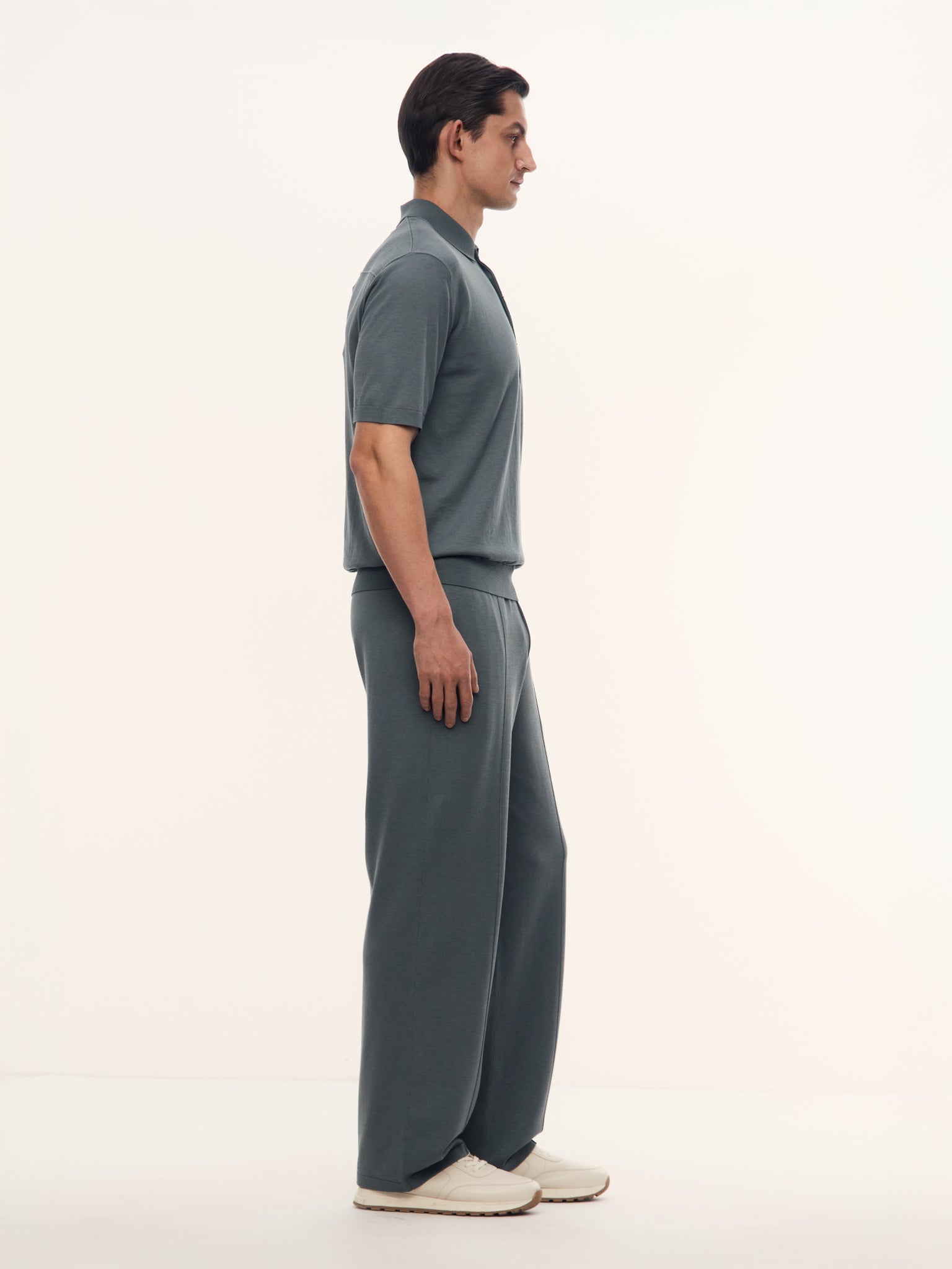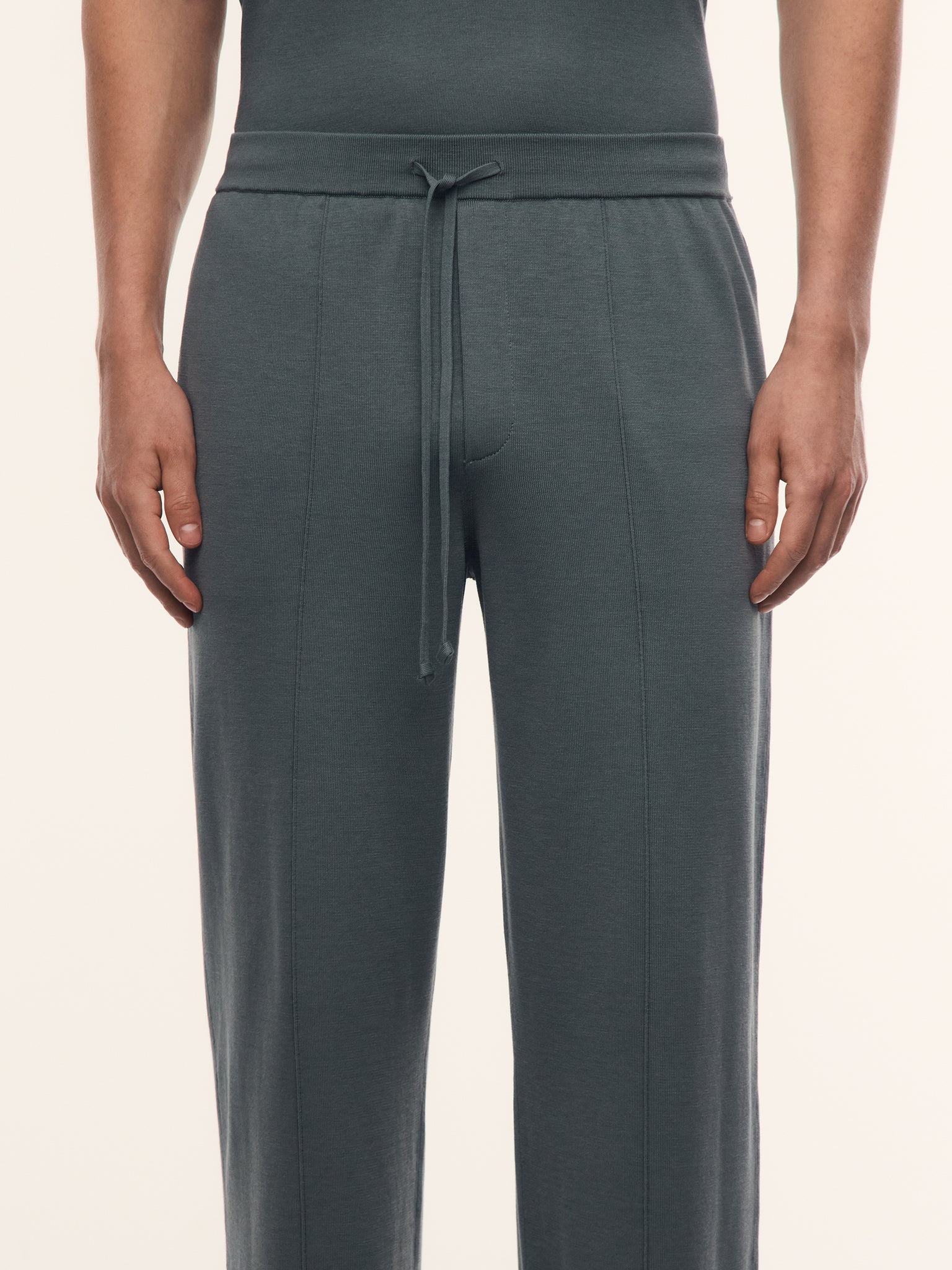Тонкий трикотаж имеет свойство вытягиваться в длину, поэтому мы сделали брюки слегка укороченными.
