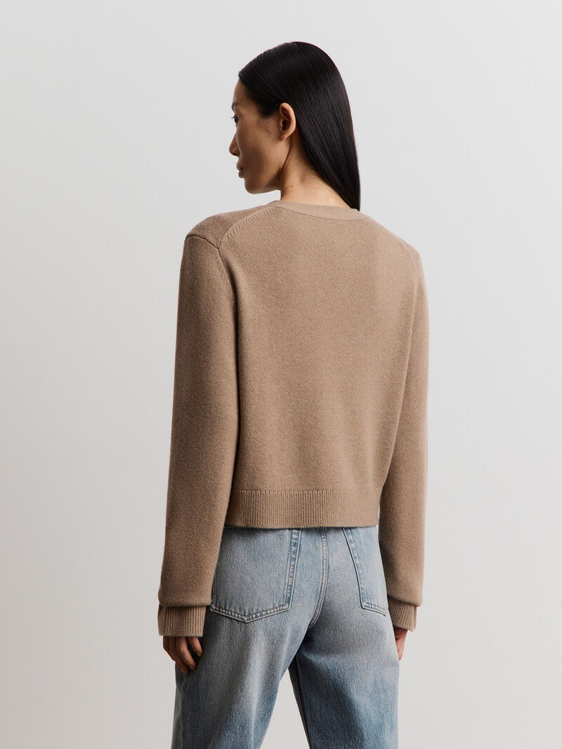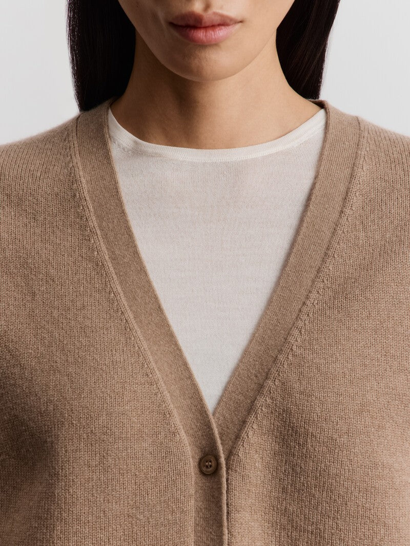 Базовый кардиган из мягкой согревающей смеси шерсти австралийского мериноса и кашемира. Натуральный природный оттенок и комфортный силуэт — такой кардиган легко вписать в гардероб и хочется носить как можно чаще.
