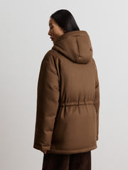 Индекс качества Fill Power равен 750 — максимально высокий показатель для утиного пуха. В этом пуховике — 190 г пуха (размер S), поэтому в нем должно быть тепло до -15 °C.